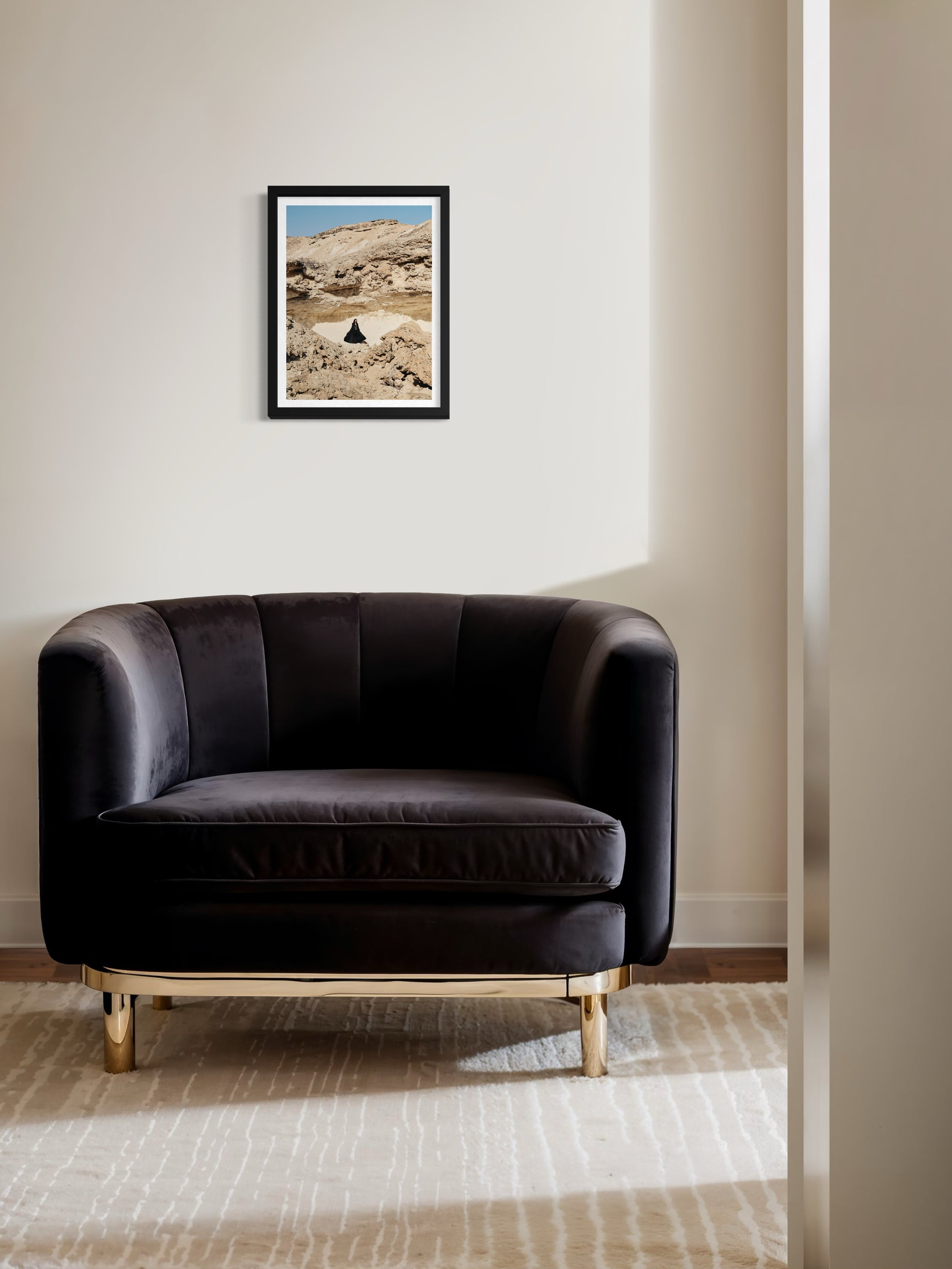 Laura et son équipe sont passées des dizaines de fois devant cet espace rocheux, plus sauvage, plus difficile d’accès. Chaque passage en voiture faisait naître la même sensation : quelque chose l’attirait, une lumière, une forme, une vibration qui appelait l’exploration. Un jour, elle a décidé qu’il fallait s’arrêter.En haut des rochers, le paysage s’est révélé. Une lumière incroyable baignait ce petit amphithéâtre naturel, transformant la pierre en sculpture et le sol en matière vivante.